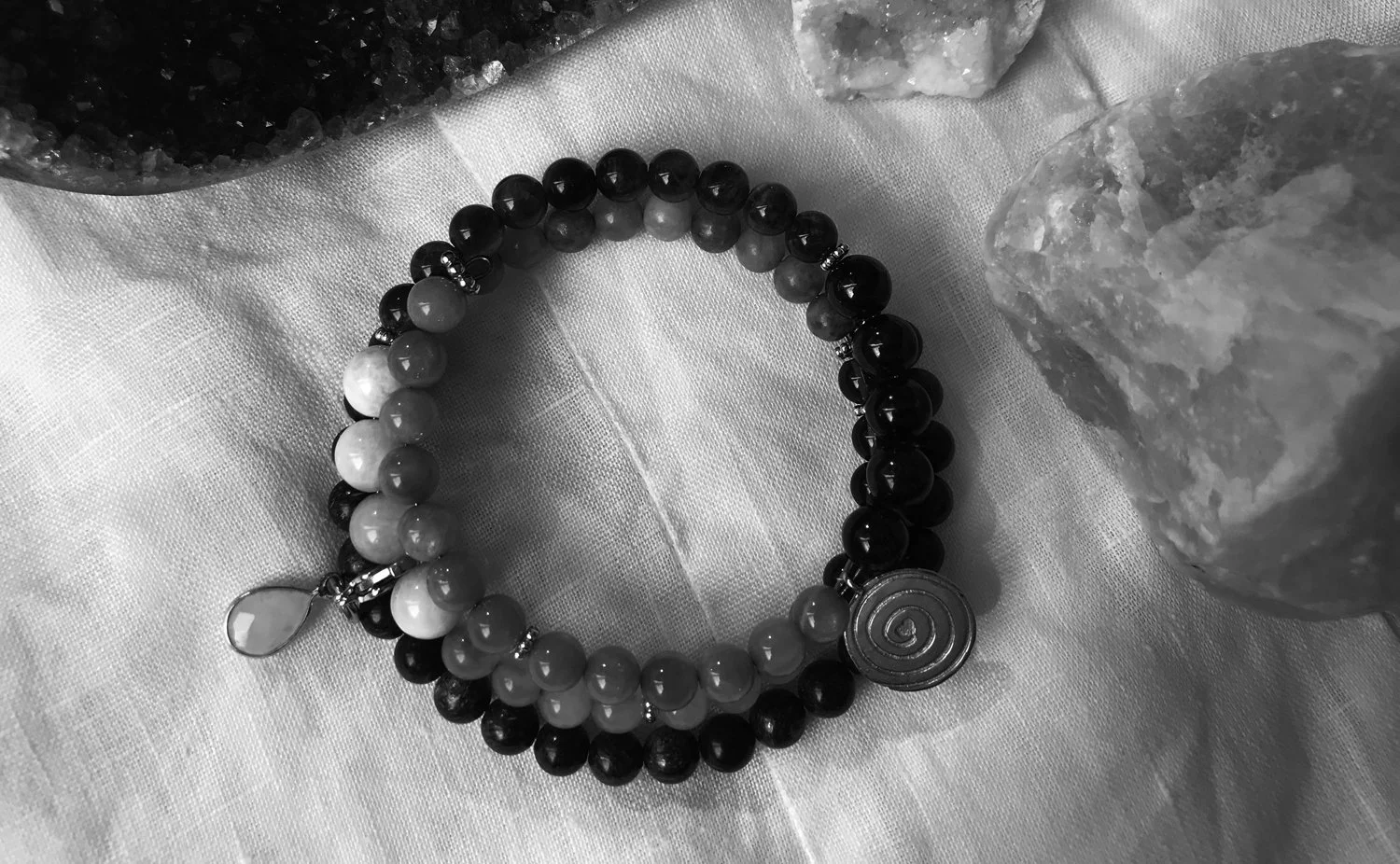 Next, we will create our “lunar mala,” a personalized bracelet representing female cyclicality and the wheel of life. Each moment of the cycle will be symbolized by a specifically chosen stone, and a beautiful removable pendant will allow you to track your cycle day by day.